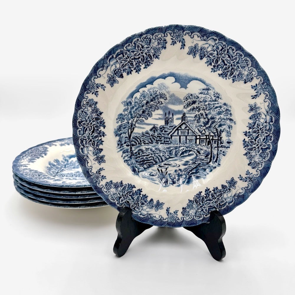 Ajoutez une touche de charme de la campagne anglaise à votre table avec ces 6 assiettes à soupe en porcelaine anglaise bleue et blanche signée Churchill.