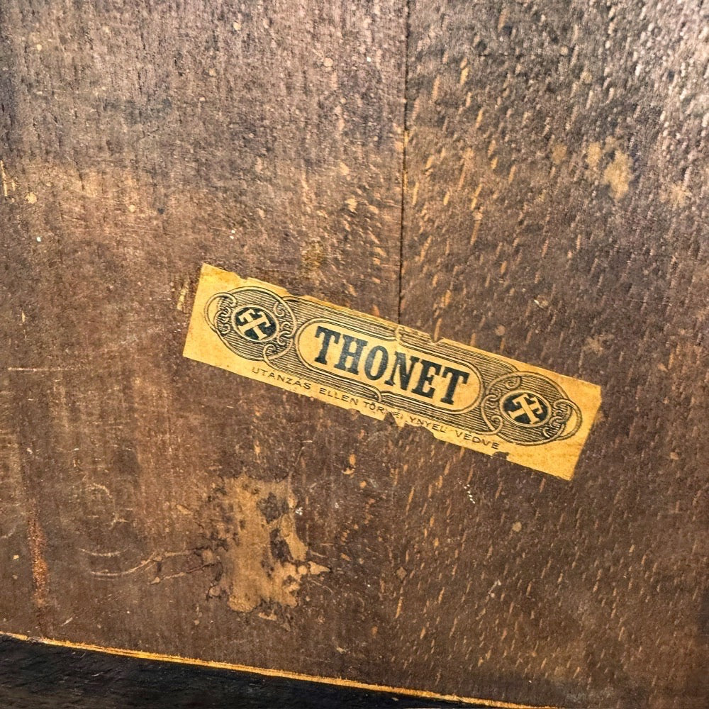Ces pièces illustrent avec une grande pureté formelle la maîtrise absolue du cintrage du hêtre à la vapeur, procédé révolutionnaire qui fit la renommée internationale de Thonet à la fin du XIXᵉ siècle.