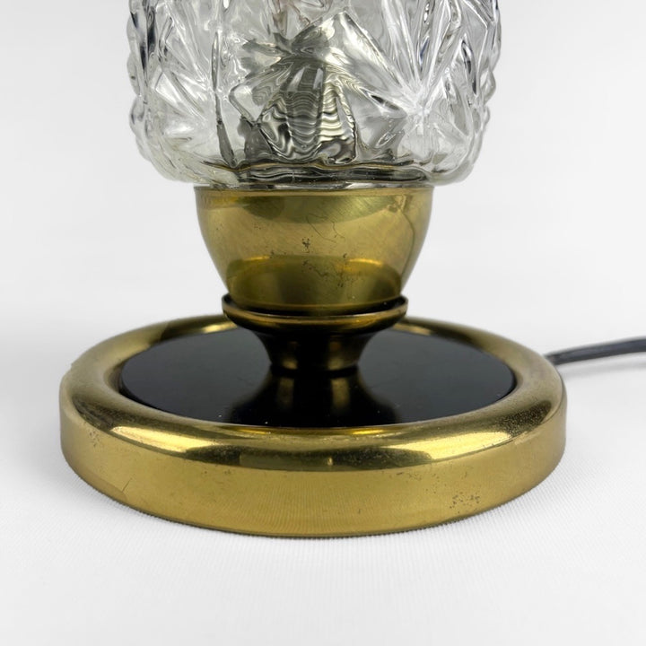 Cette lampe de chevet au verre épais moulé et texturé date des années 50. Elle rappelle les lignes épurées propres à l'esprit du design scandinave. Nous aimons la sobriété de sa composition.
