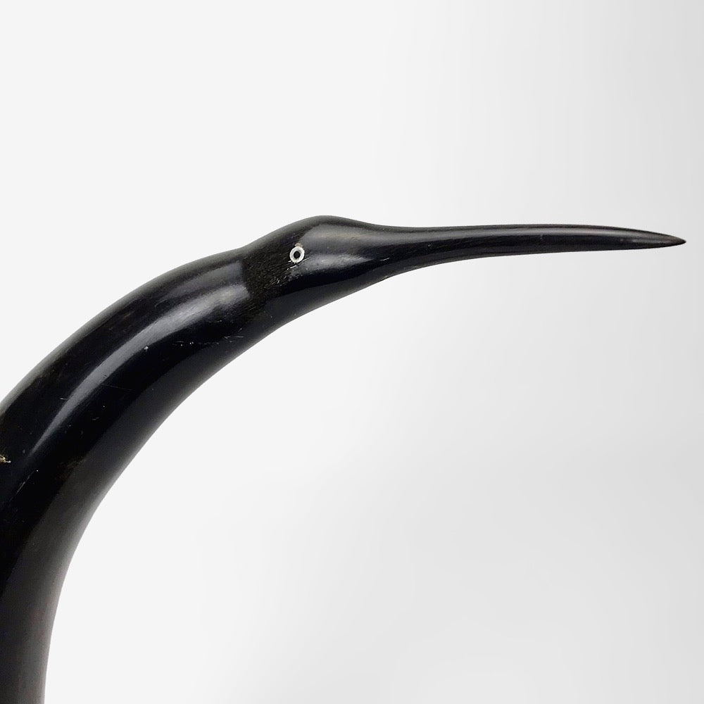 Une très belle silhouette pour cette grande sculpture d'aigrette ardoisée en corne de bovin des années 50/60. Nous aimons son profil particulièrement élégant, avec ses ailes repliées et ses longues pattes effilées. Très design, cet objet décoratif sculpté à la main s'acclimatera aussi bien dans une ambiance vintage que dans un environnement plus contemporain.