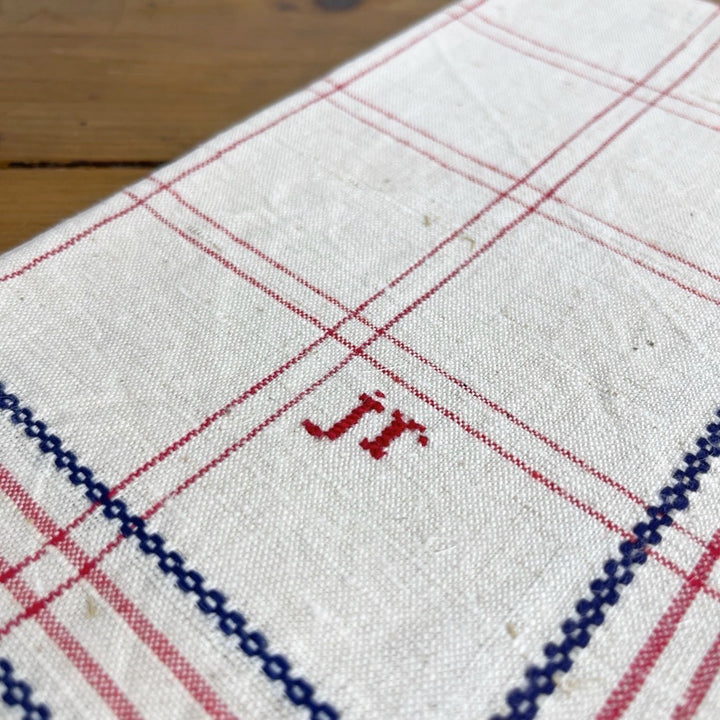 Nous ne nous lasserons jamais du charme et de la beauté du linge de maison ancien. Et que dire de leur durabilité... Ces quatre torchons de cuisine en fil de lin liteau devaient faire parti d'un trousseau car des initiales y sont délicatement brodées. Leur état nous autorise à penser qu'ils n'ont jamais été utilisés. La demoiselle n'aurait-elle pas trouver un galant ?
